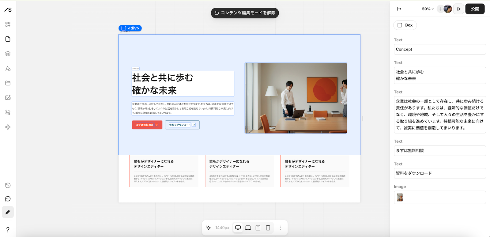 デザインを「壊さない」編集ができる「コンテンツ編集モード」